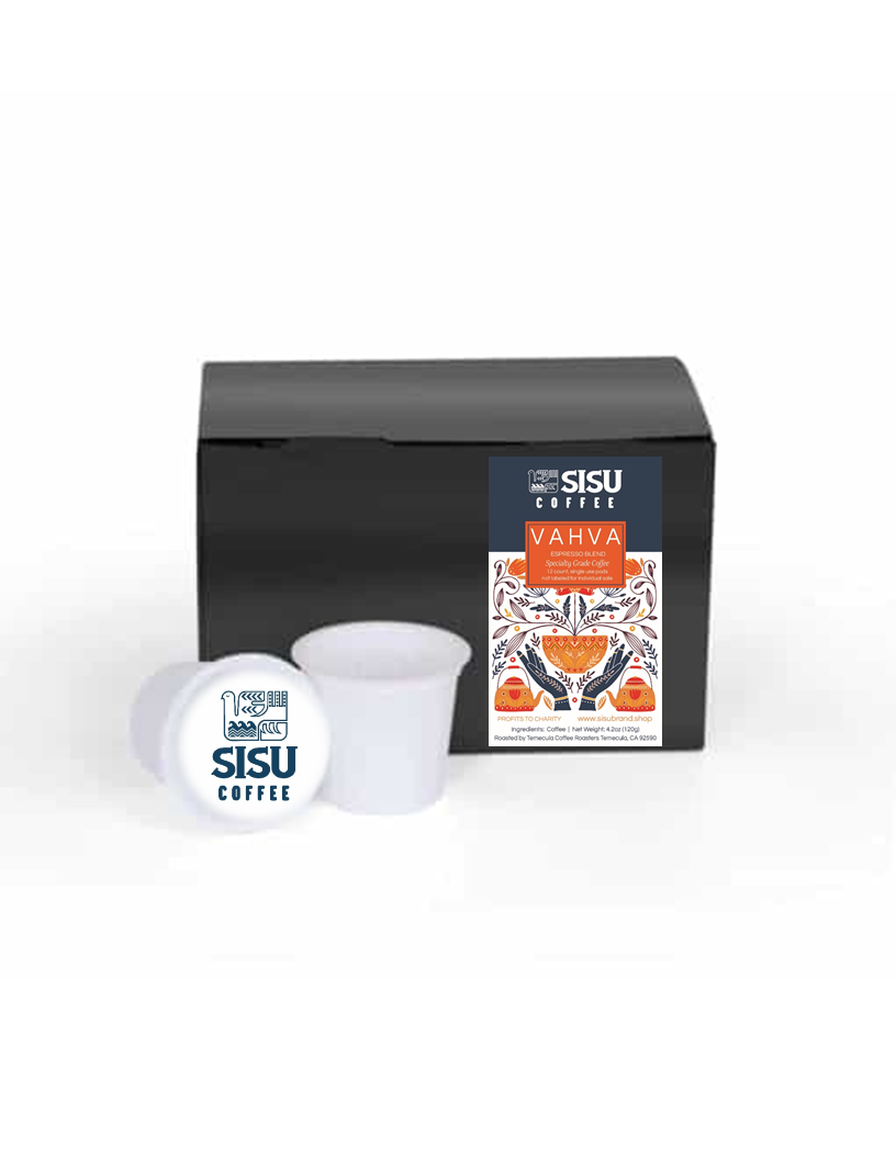 Our strongest coffee. Vahva is a Finnish word that translates to “Strong” and of course, this coffee holds up to the name. An espresso blend from all corners of the world combines 6 beans to create a strong and bold cup with toasted notes and a velvet smooth finish. Our ode to you; may your coffee be as bold and as powerful as your endeavors. Cheers to the conqueror in you.